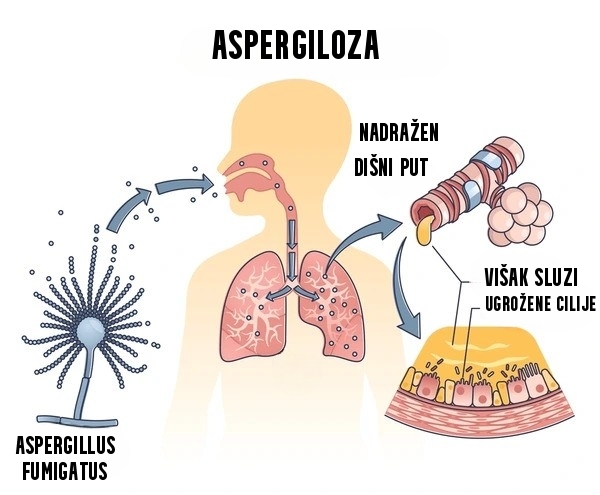 Aspergiloza je obično uzrokovana udisanjem sitnih komadića plijesni.