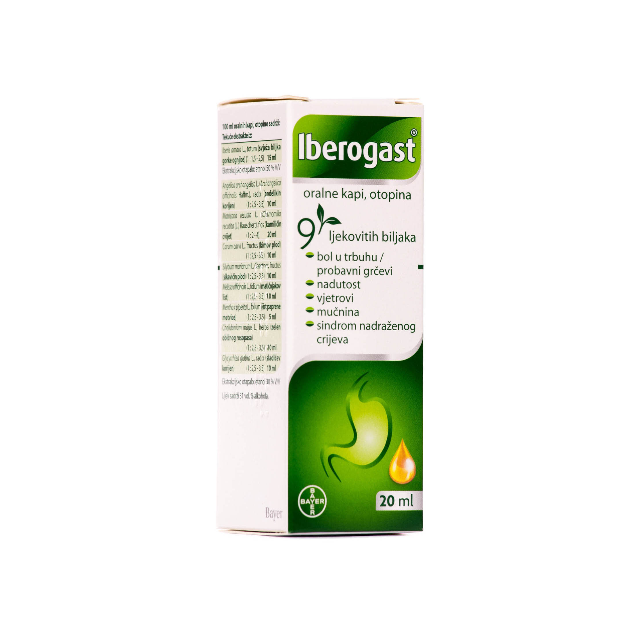 Kombinacija 9 biljnih ekstrakata u Iberogastu pokazala se u kontroliranim kliničkim ispitivanjima da ublažava nelagodu u želucu i abdomenu povezanu sa gastrointestinalnim smetnjama kao što su funkcionalna dispepsija i sindrom iritabilnog crijeva.