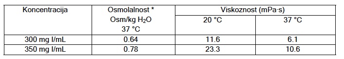 - Joheksol je neionsko, monomerno, trijodirano, vodotopljivo kontrastno sredstvo. Osmolalnost i viskoznost otopina navedene su u tablici: