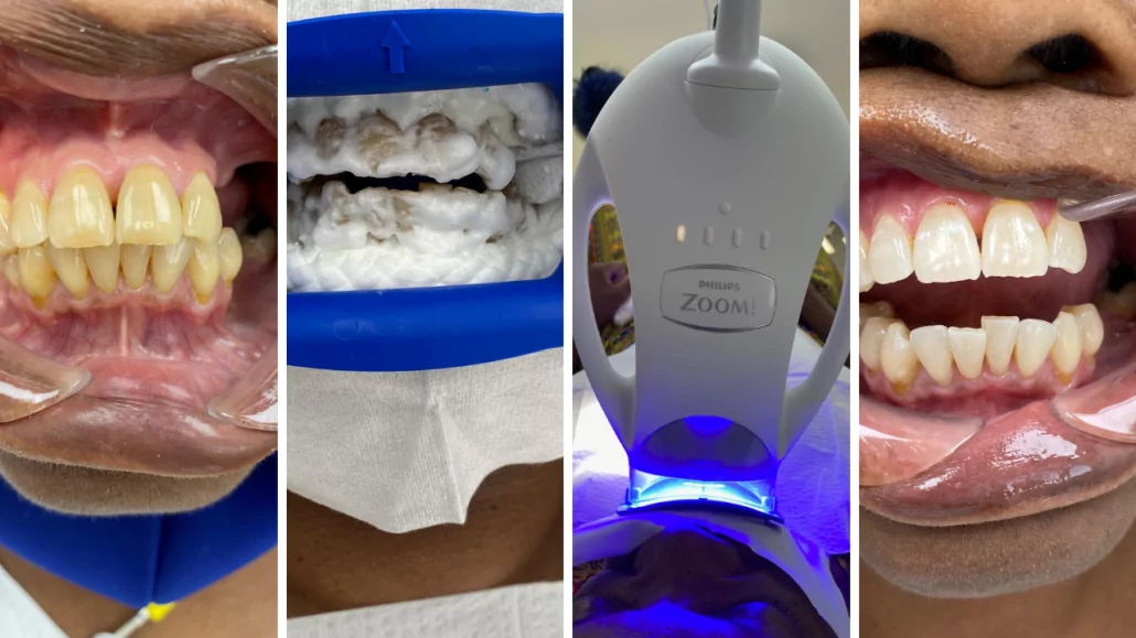 Zoom izbjeljivanje zubi je profesionalni proces izbjeljivanja aktiviran svjetlom koji se izvodi u stomatološkoj ordinaciji i koji može izbijeliti zube do osam nijansi za manje od sat vremena. Postupak je siguran pod stručnim nadzorom i koristi visokokoncentrirani gel vodikovog peroksida za razgradnju mrlja.